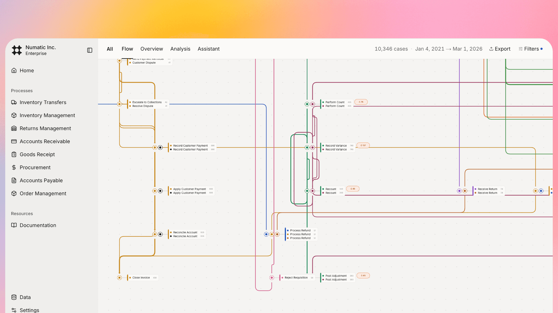 Show clients exactly where time and money leak across order-to-cash, procure-to-pay, or production workflows.